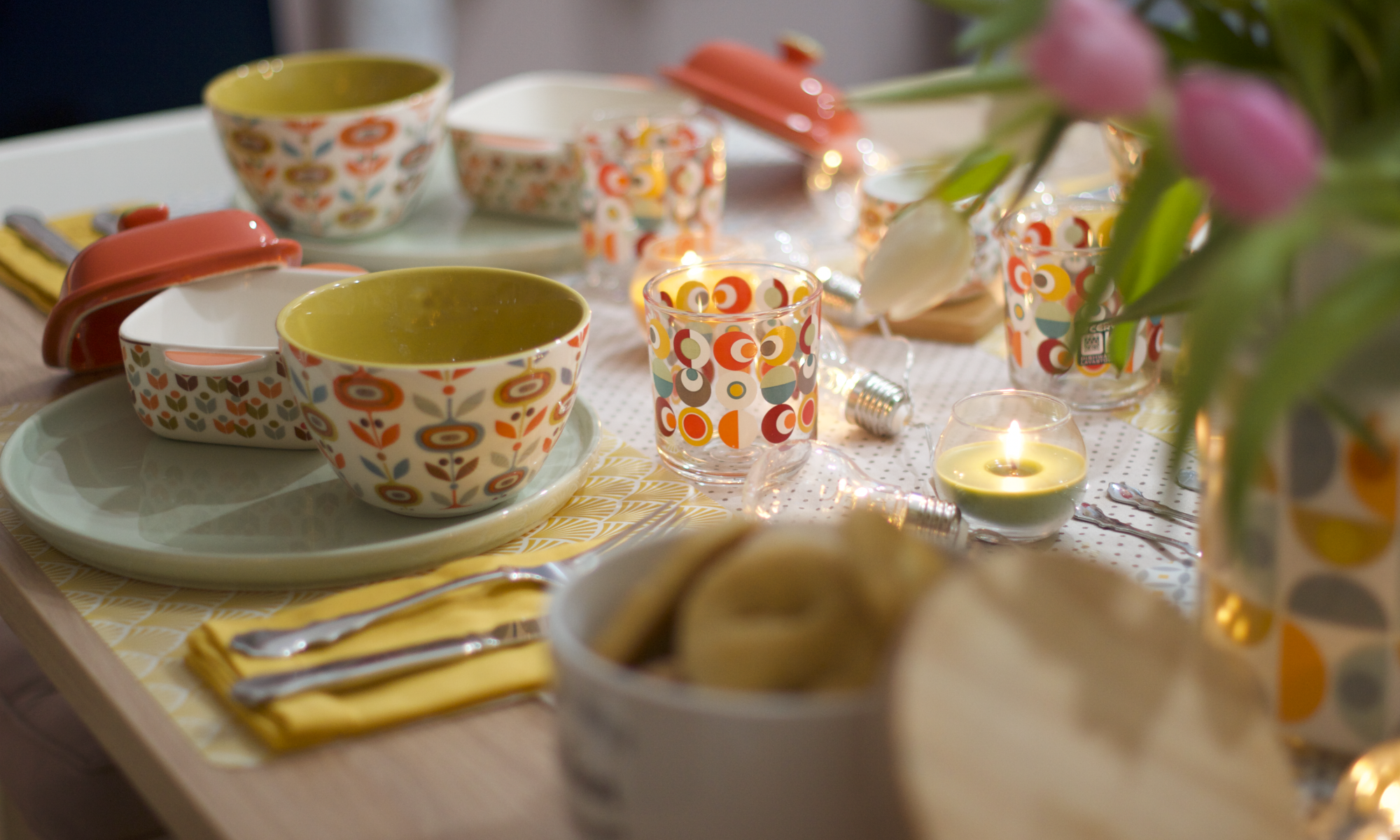 Ho usato tovaglioli e candeline negli stessi colori e stile per ravvivare la tavola.